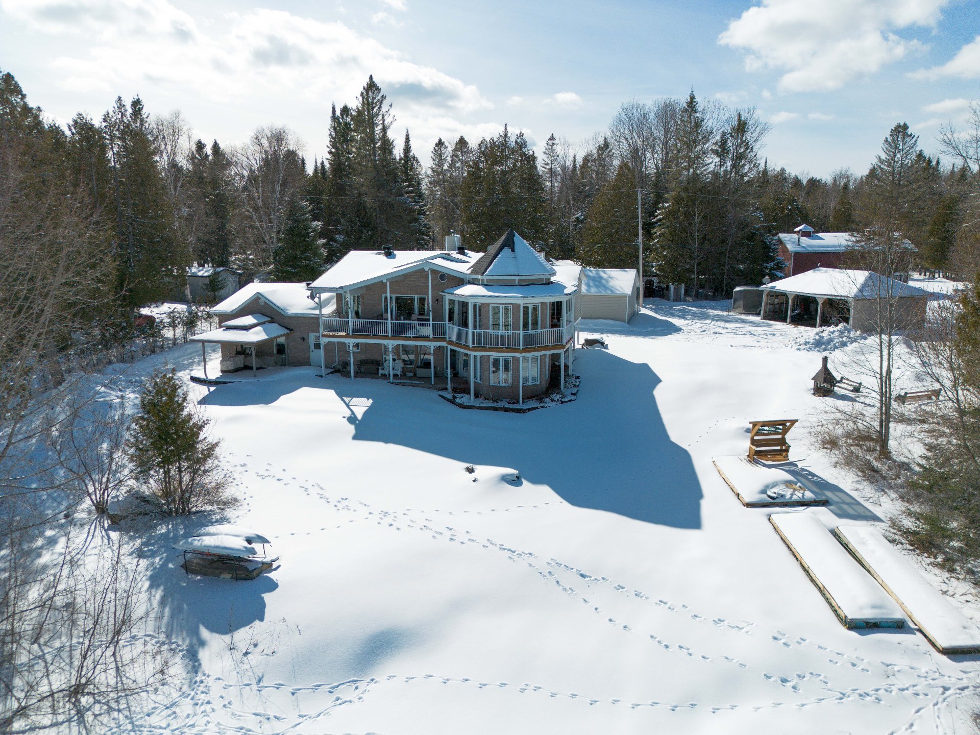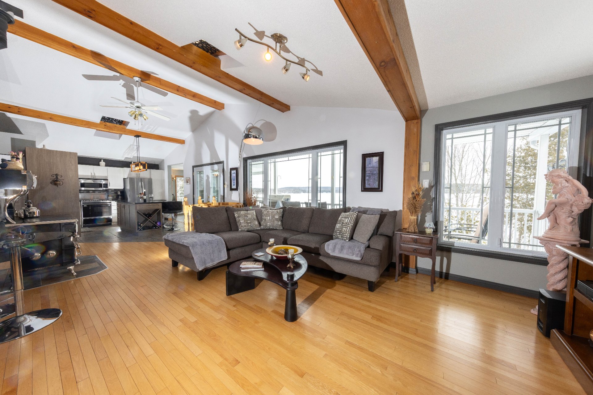 Propriété bord de l'eau exceptionnelle offrant 200 pieds de façade sur le magnifique lac Murray, avec des levers de soleil à couper le souffle. Terrain d'environ 55 000 pi² comprenant plusieurs garages, abris d'auto, espaces de rangement et hangars. La propriété propose 3 CAC avec possibilité d'une 4e (espace bureau), 2 SDB complètes, un garage double ainsi qu'une véranda ceinturante offrant des vues remarquables. Grande cour avec accès direct à l'eau. Nombreuses inclusions ajoutant une valeur considérable. Toiture neuve (2021). Entretenue avec amour et soin par les propriétaires d'origine. Première fois sur le marché. Une occasion rare!
