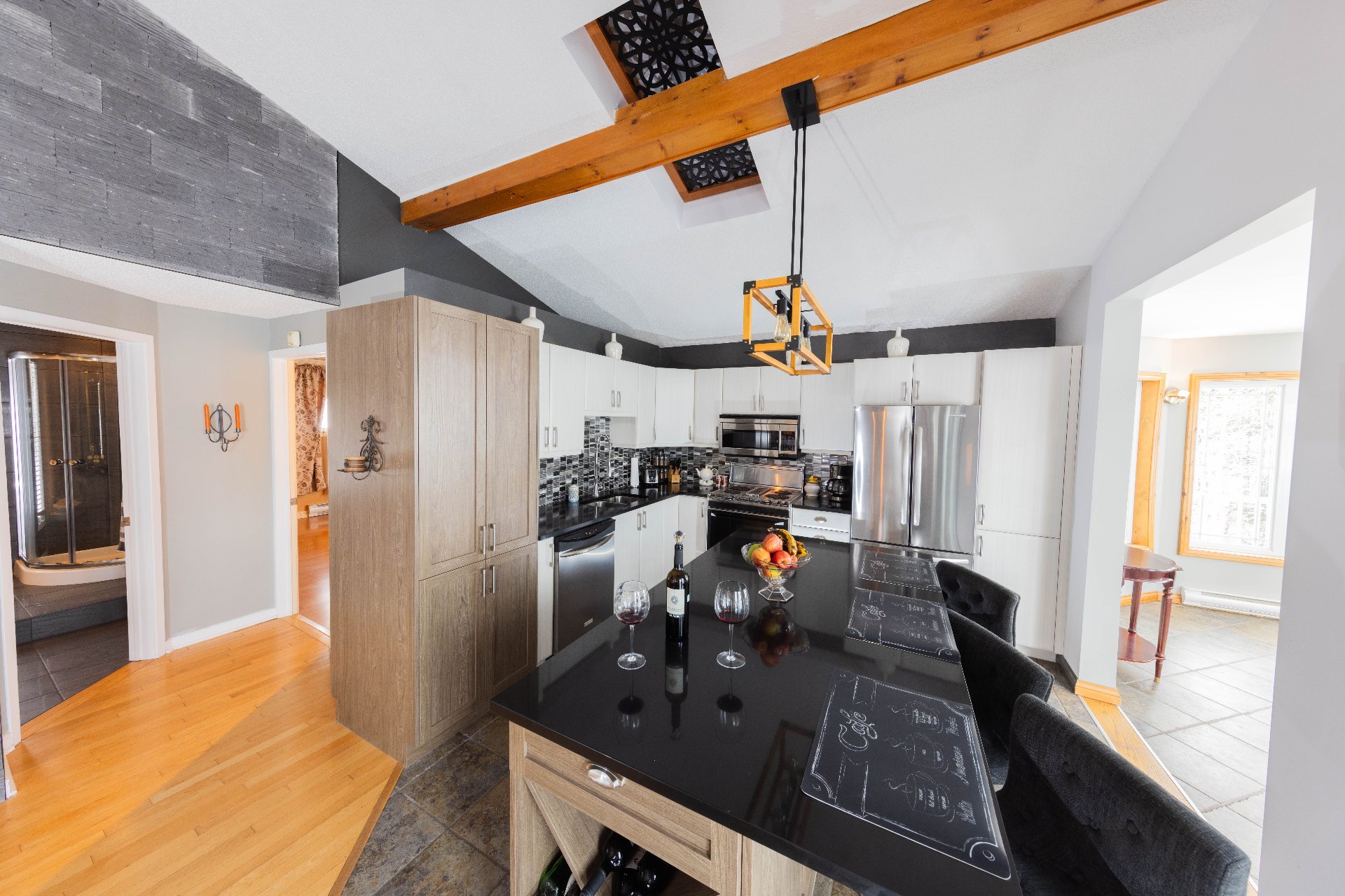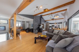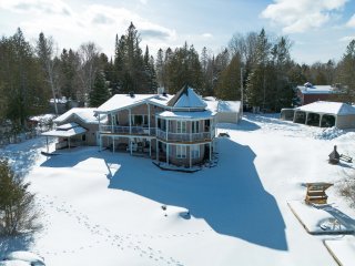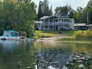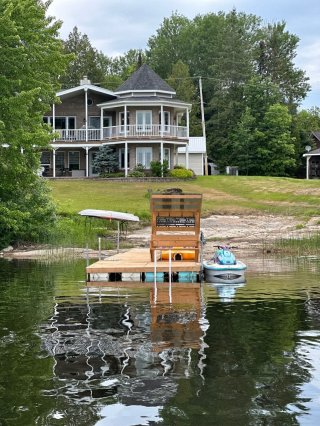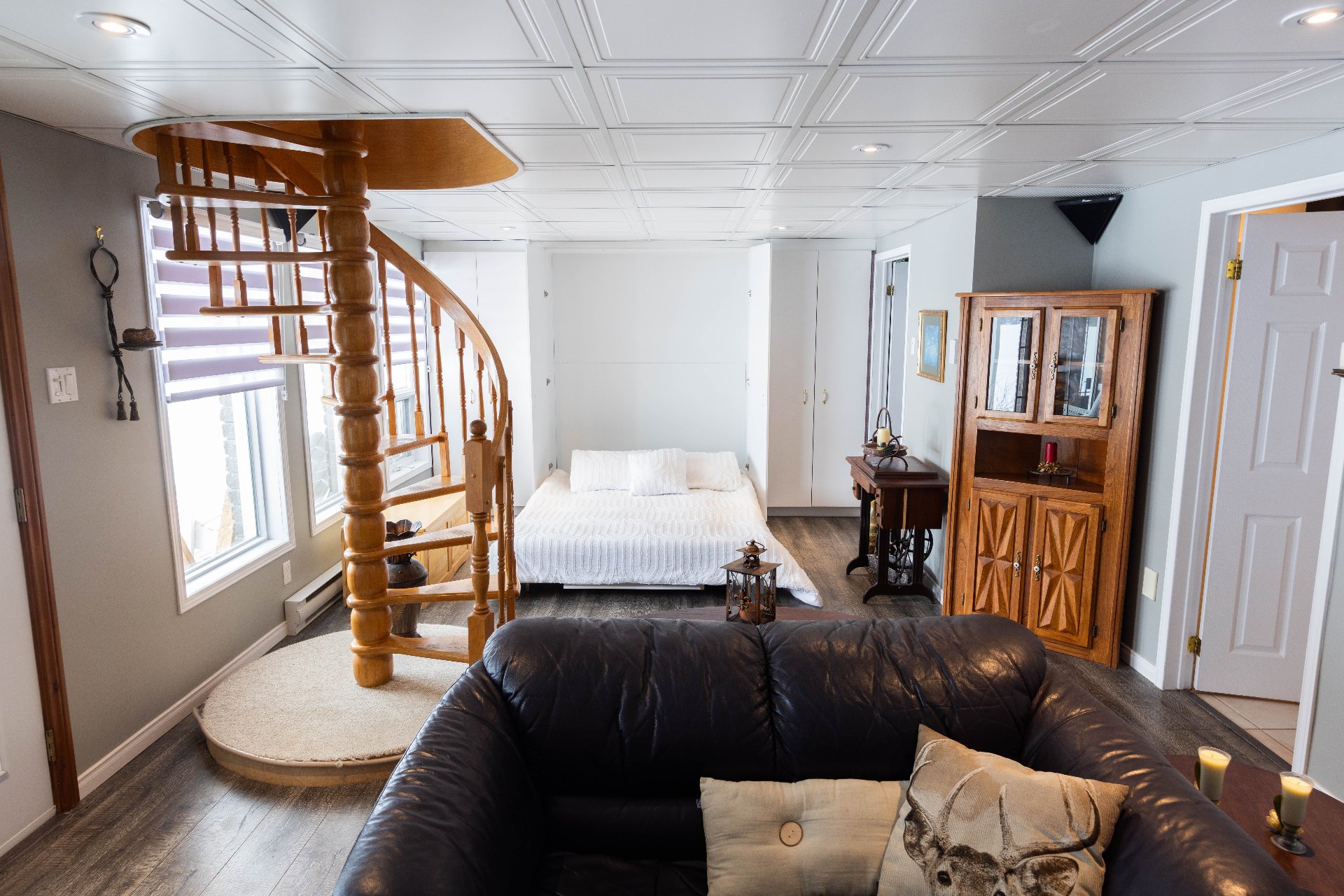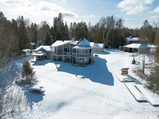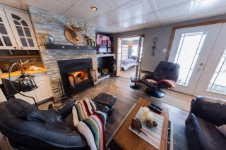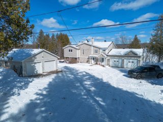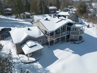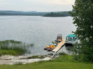 Inclus : - Électroménagers (four,lave vaiselle,réfrigérateur,laveuse et sécheuse) - Sofas et aménagement de salon à l'étage - Four à bois rustique - Meuble télé et 2 télés intelligentes récentes - Sofas et meubles au sous-sol - Plusieurs cadres et décos de choix - 2 Lits superposés pour la chambre des enfants pouvant acceillir 6 enfants - Lit Queen dans la chambre d'invité (au S-Sol)- Lit escamotable Queen (murphy-bed) et espaces de rangement au sous-sol - Meubles de jardins, vases et décorations - Quai