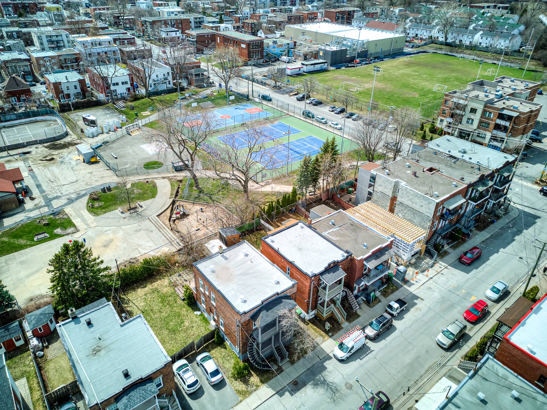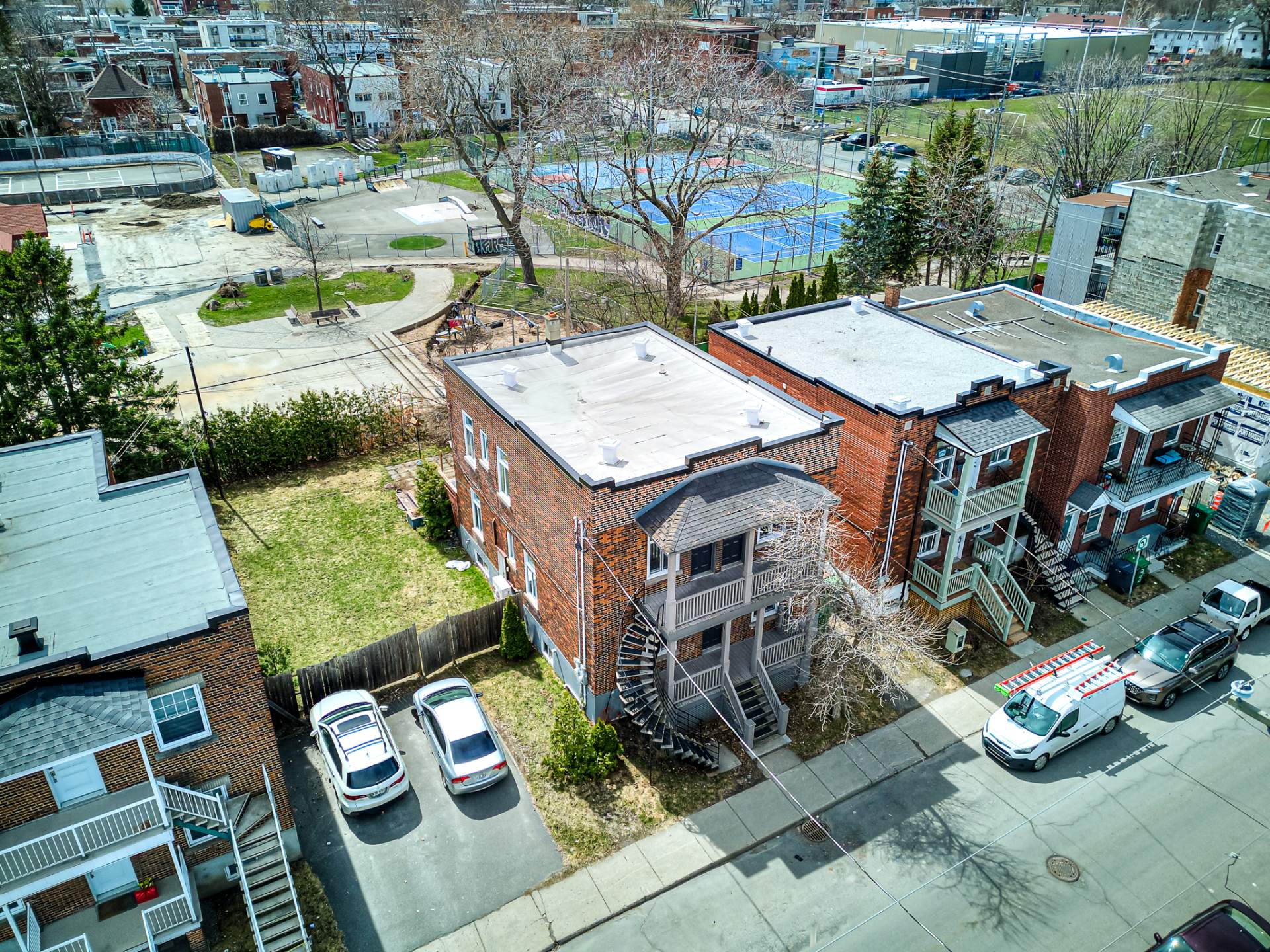 Le terrain du duplex a une superficie de 2 415 pi² et n'inclut pas le terrain adjacent de 2 415 pi², également en vente. (Centris 17917122). Les photos présentées incluent le duplex et le terrain voisin à titre illustratif seulement.