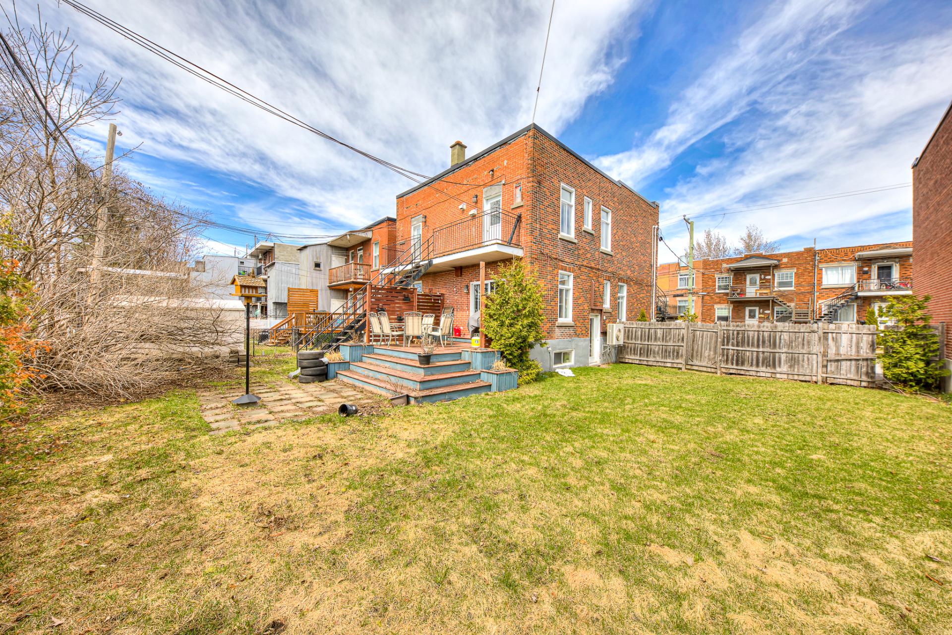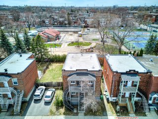 Superbe duplex entièrement rénové offrant une double occupation dans un emplacement de choix. Le logement principal comprend 4 CAC, 2 salles de bain sur deux étages, avec deux espaces de vie et une entrée indépendante menant au sous-sol -- idéal pour un projet intergénérationnel ou pour générer un revenu locatif additionnel. À l'étage, logement de 2 chambres et 1 salle de bain avec comptoirs en quartz et aire de vie à concept ouvert. Grande cour arrière sans voisins, adossée directement à un parc. Possibilité d'acquérir le terrain voisin (également en vente) pour construire un autre immeuble multifamilial. Saisissez l'opportunité!